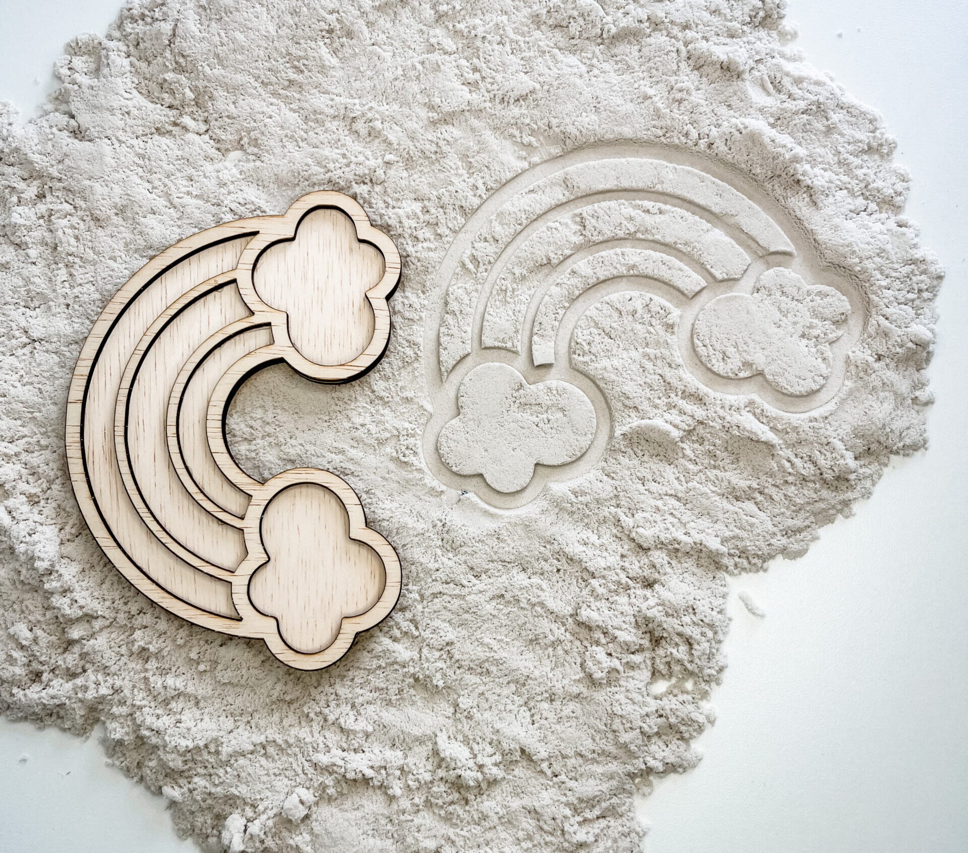 - Veelzijdig in gebruik: Gebruik de regenboog om afdrukken te maken in kinetisch zand, of vul hem met speelrijst of parels voor een speelse en kleurrijke ervaring.